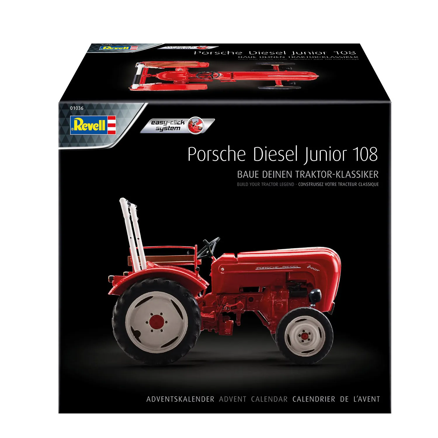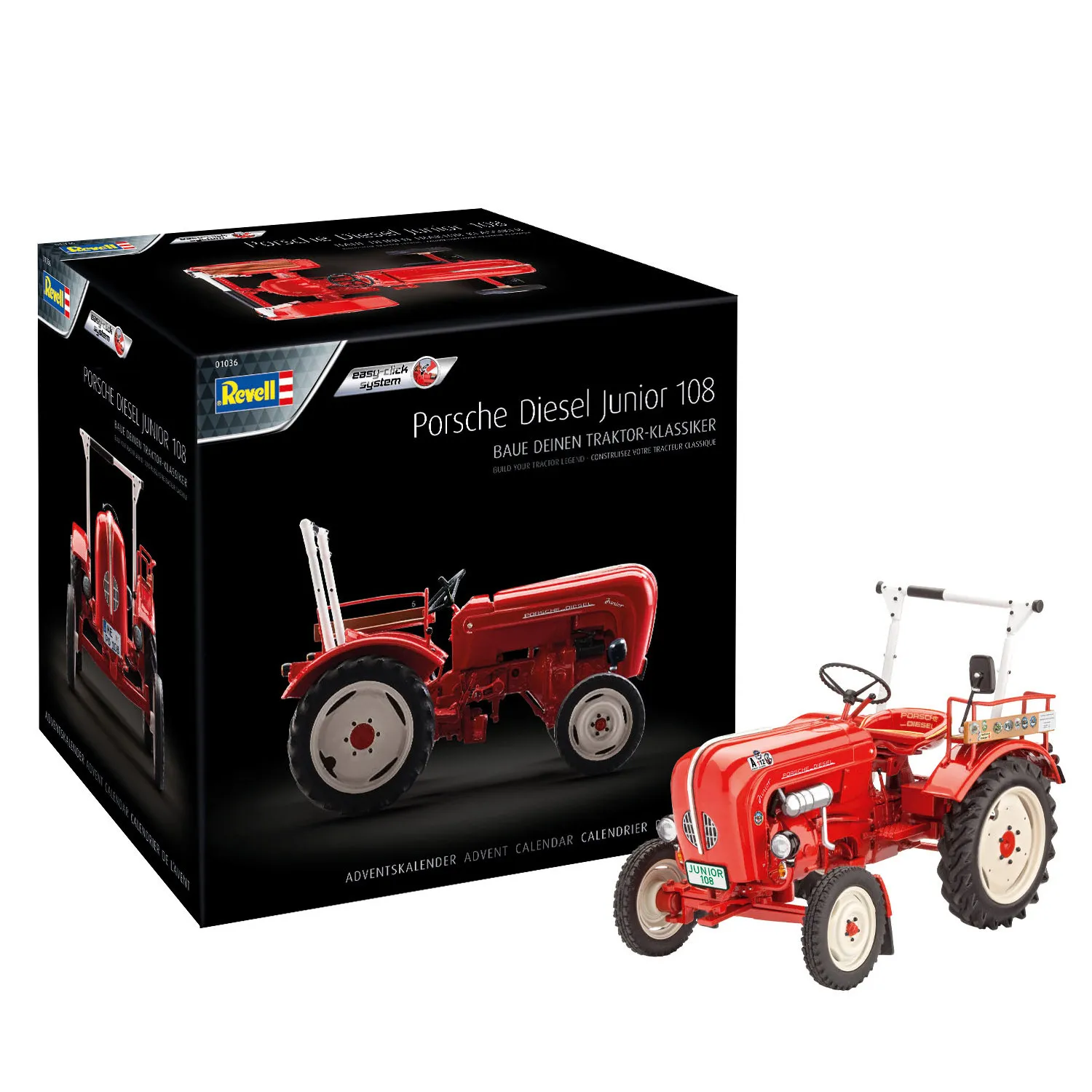 Der legendäre, robuste Porsche Junior 108 wurde von der Porsche-Diesel Motorenbau GmbH ab den später 1950er Jahren gefertigt. Mit diesem Adventskalender baust du dir den Traktorklassiker jetzt selbst. Alles was du dazu benötigst ist in den 24 Türchen enthalten und an Weihnachten steht dein Porsche Junior 108 unter dem Weihnachtsbaum.