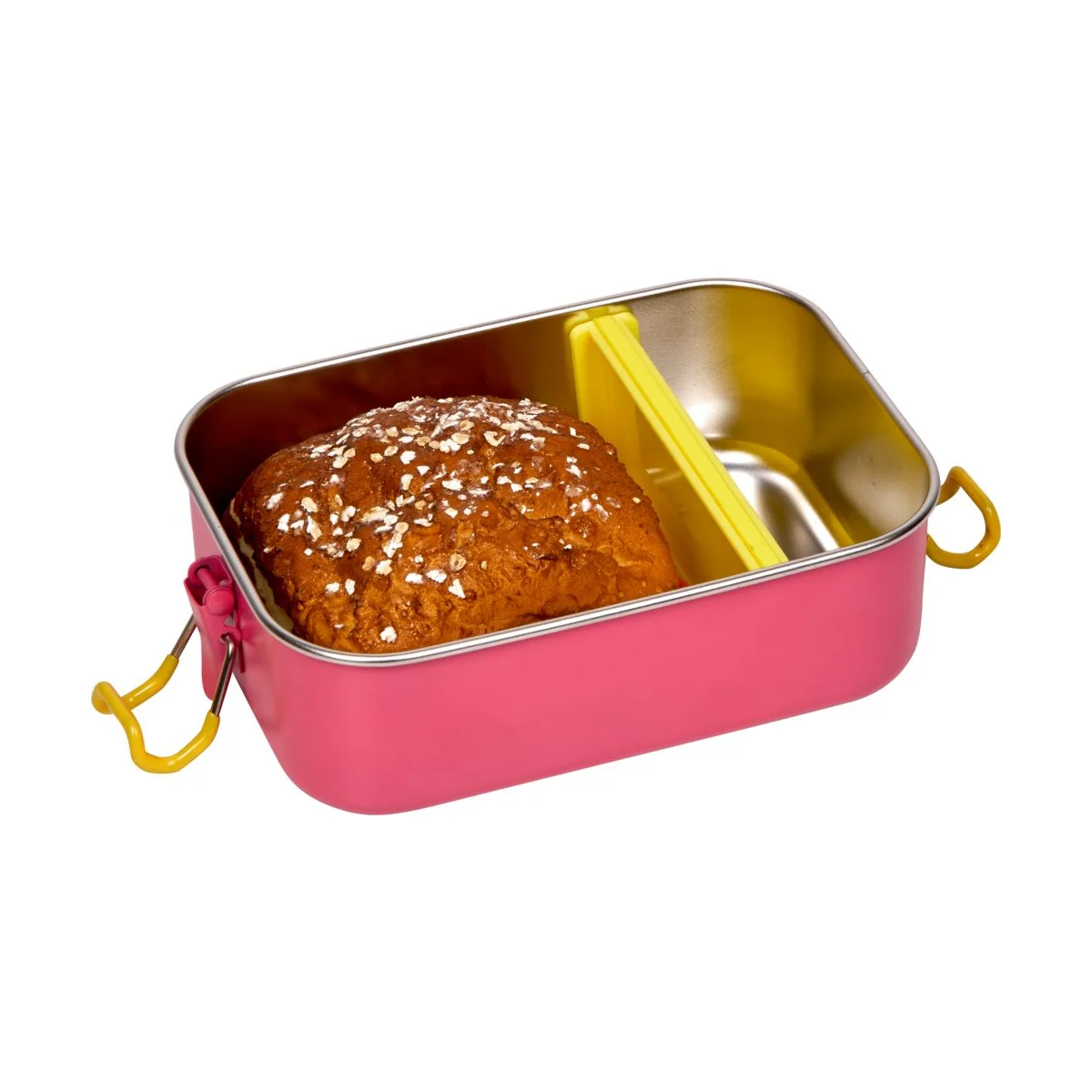 Die Brotdose aus Edelstahl ist äußerst robust und bietet mit ihrem Fassungsvermögen von 800 ml ausreichend Platz für Obst, Gemüse, Brot oder kleine Snacks für Zwischendurch. Der stabile Bügelverschluss der Lunchbox hält alles sicher und zuverlässig beisammen. Dank der stufenlos verstellbaren Trennwand kann die Snackbox individuell angepasst werden und verschiedene Lebensmittel können problemlos getrennt voneinander aufbewahrt werden. Und das Beste: Die spülmaschinengeeignete Lunchbox ist komplett auslaufsicher, sodass sie sich sicher im Rucksack verstauen lässt. Für eine unbeschwerte Kindergartenzeit! Die Spiegelburg Lunchbox Blume