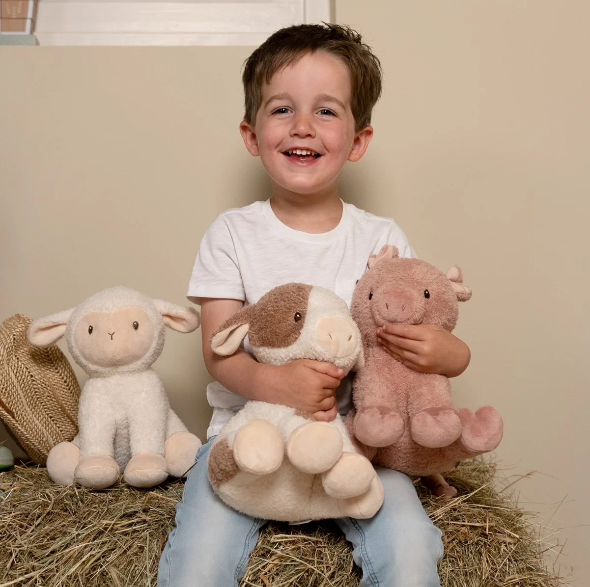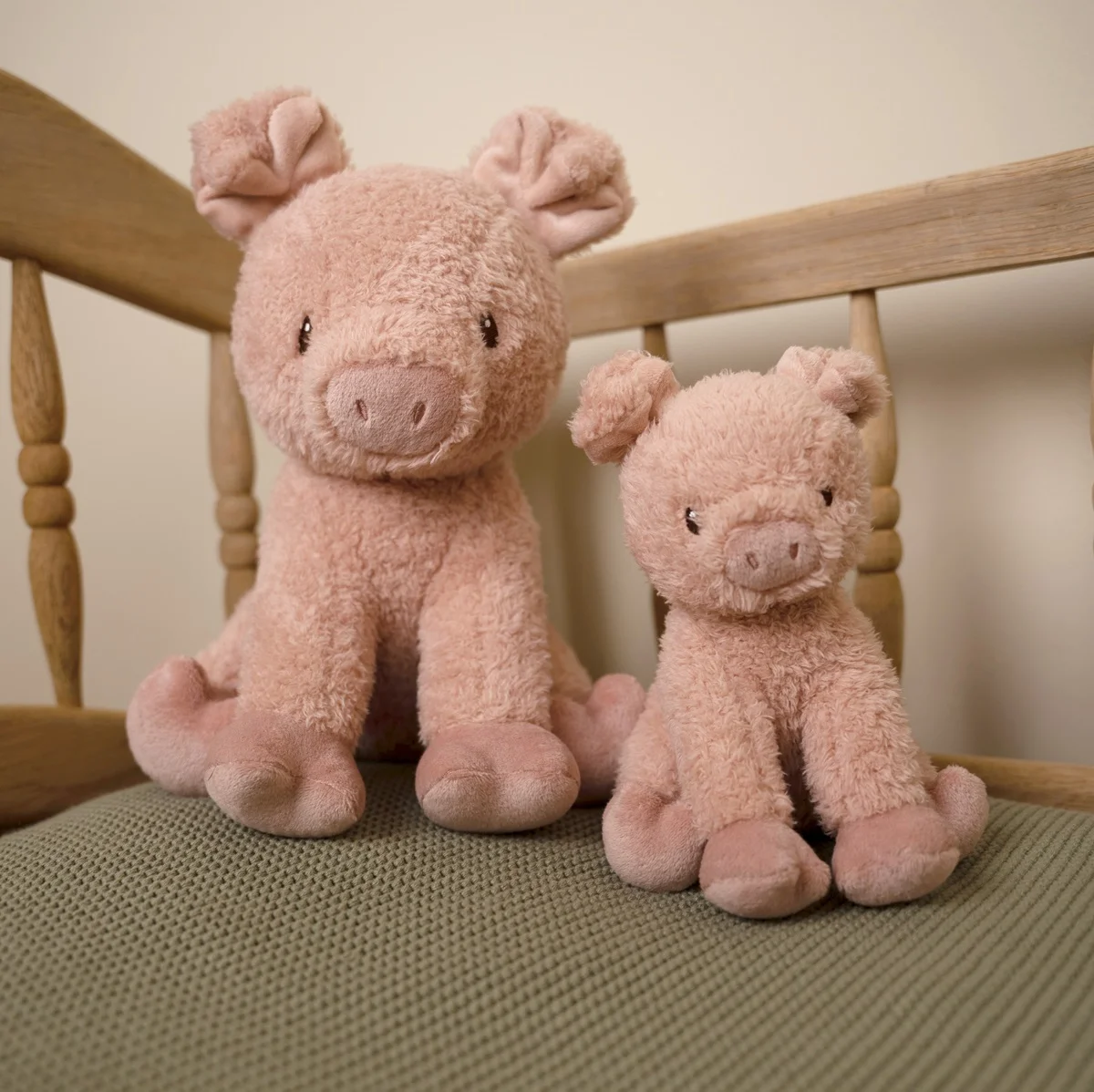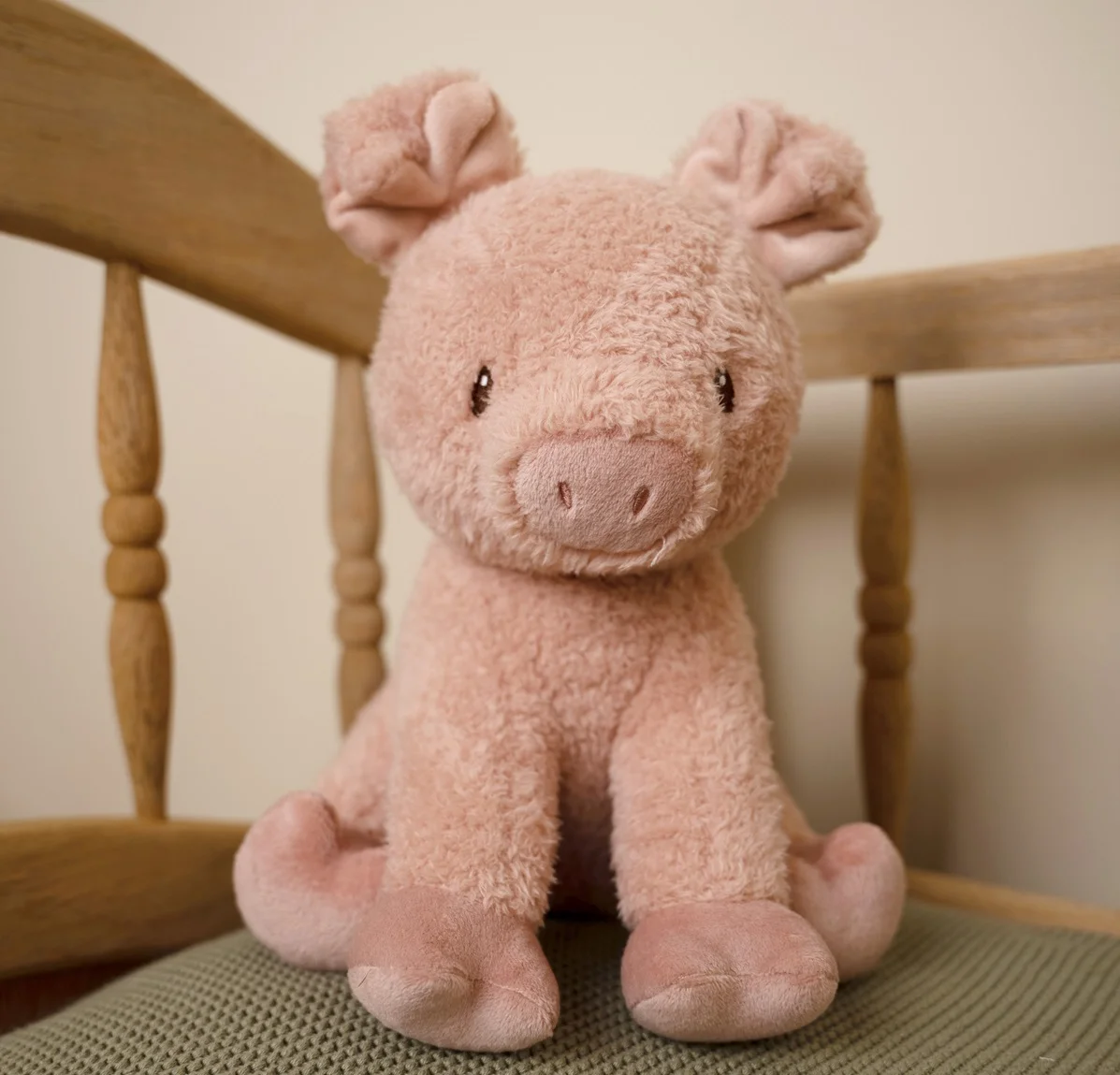Kuscheltier Schwein Little Farm, groß. Grunz, grunz, grunz! Dieses Schwein liebt es zu spielen. Es bleibt gerne bei dir und kann überall hin mitgenommen werden. Machen Sie auch unbedingt die Bekanntschaft mit den Freunden dieses süßen Schweins: dem Huhn, der Kuh, dem Schaf und der Gans. Gemeinsam erleben sie Abenteuer auf dem Bauernhof. Dieses kleine Schwein besteht aus wunderbar weichen Materialien, was es unglaublich freundlich und kuschelig macht.