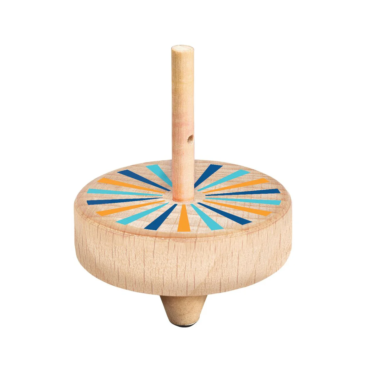 Bereit für rasanten Kreiselspaß? Dank des praktischen Haltegriffs mit Schnur lässt sich der Holzkreisel ganz einfach abrollen und im Nu zum Rotieren bringen. Die bunten Motive auf dem Kreisel sorgen dabei für spannende visuelle Effekte. Anhand der Kreiselbewegung lässt sich auch spielerische Art und Weise erleben, wie der Drehimpuls Gegenstände um einen Schwerpunkt kreisen lässt. So können auch größere Phänomene, wie ein Planet, der um die Sonne wandert, für Kinder erklärt werden.